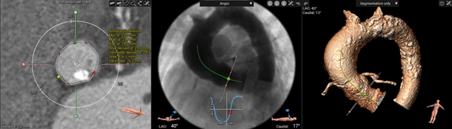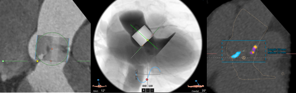 Another useful feature is the automatic annular plane segmentation with the cusp detection, which is a real time saver. This along with the simulated angio view and the automatic cusp overlap view gives optimal c-arm angulation which reduces procedure time and saves radiation.